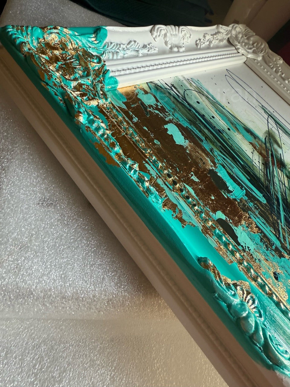 Edges: Framed in a white baroque frame with gold leaf & paint embellishments