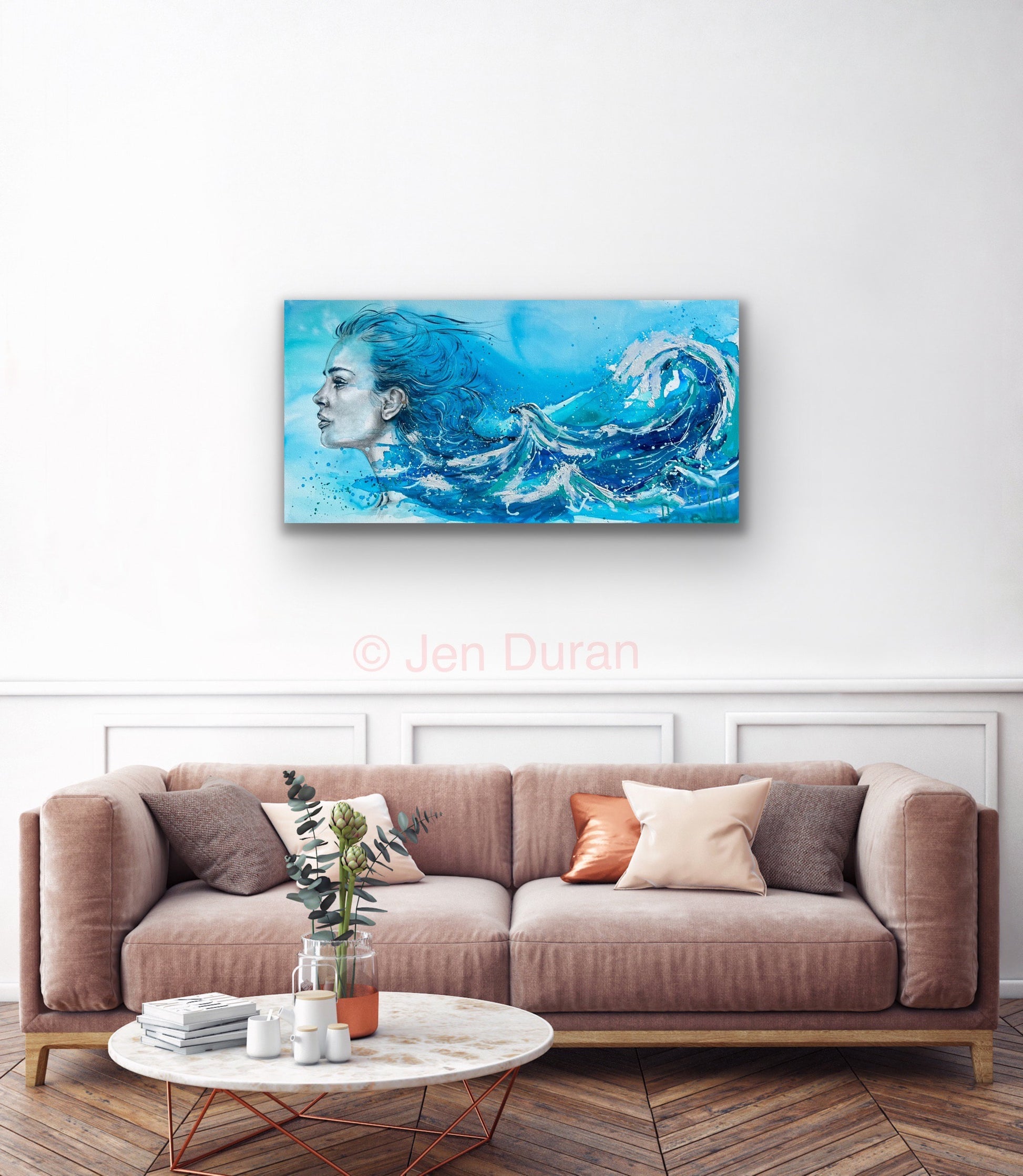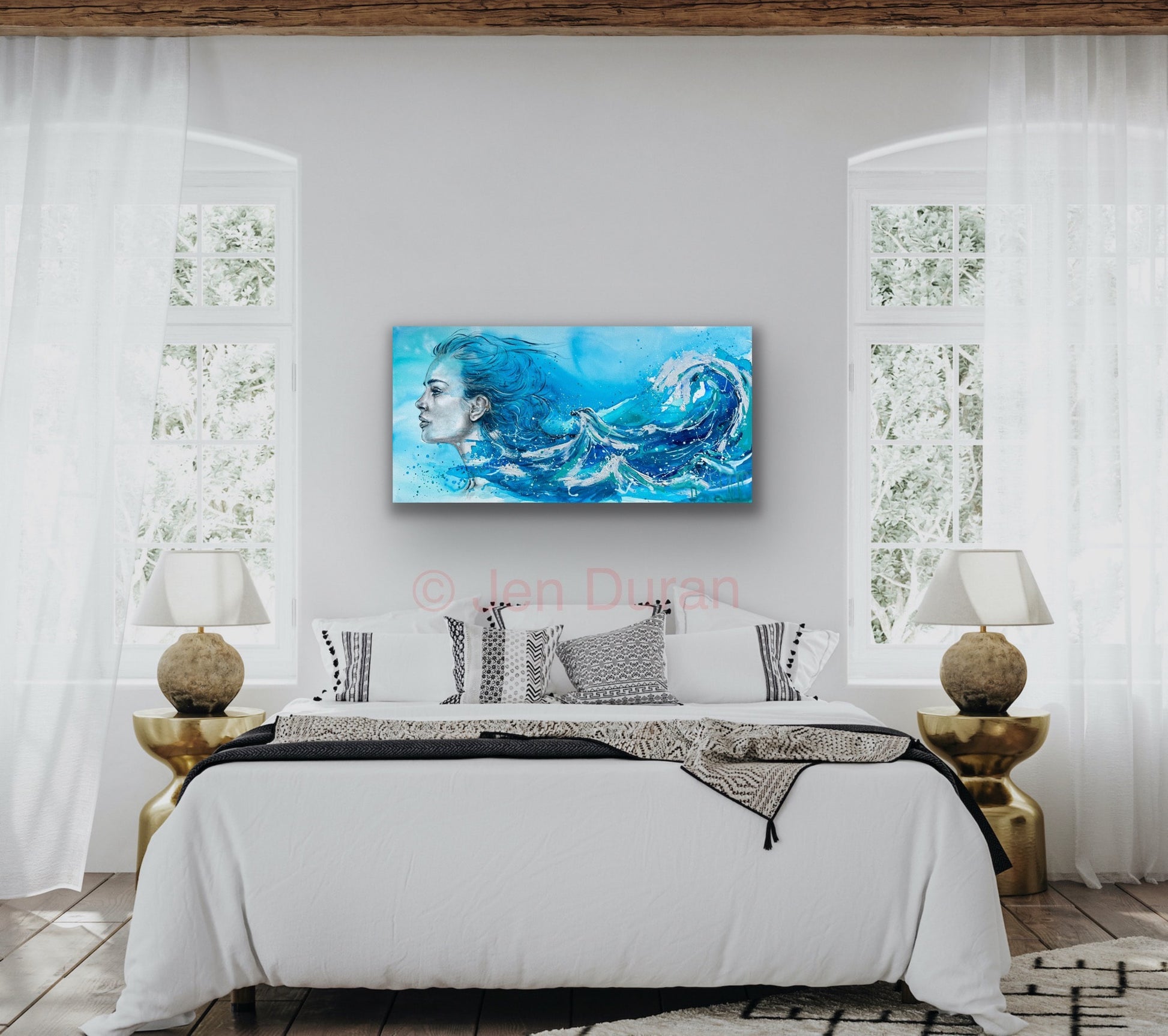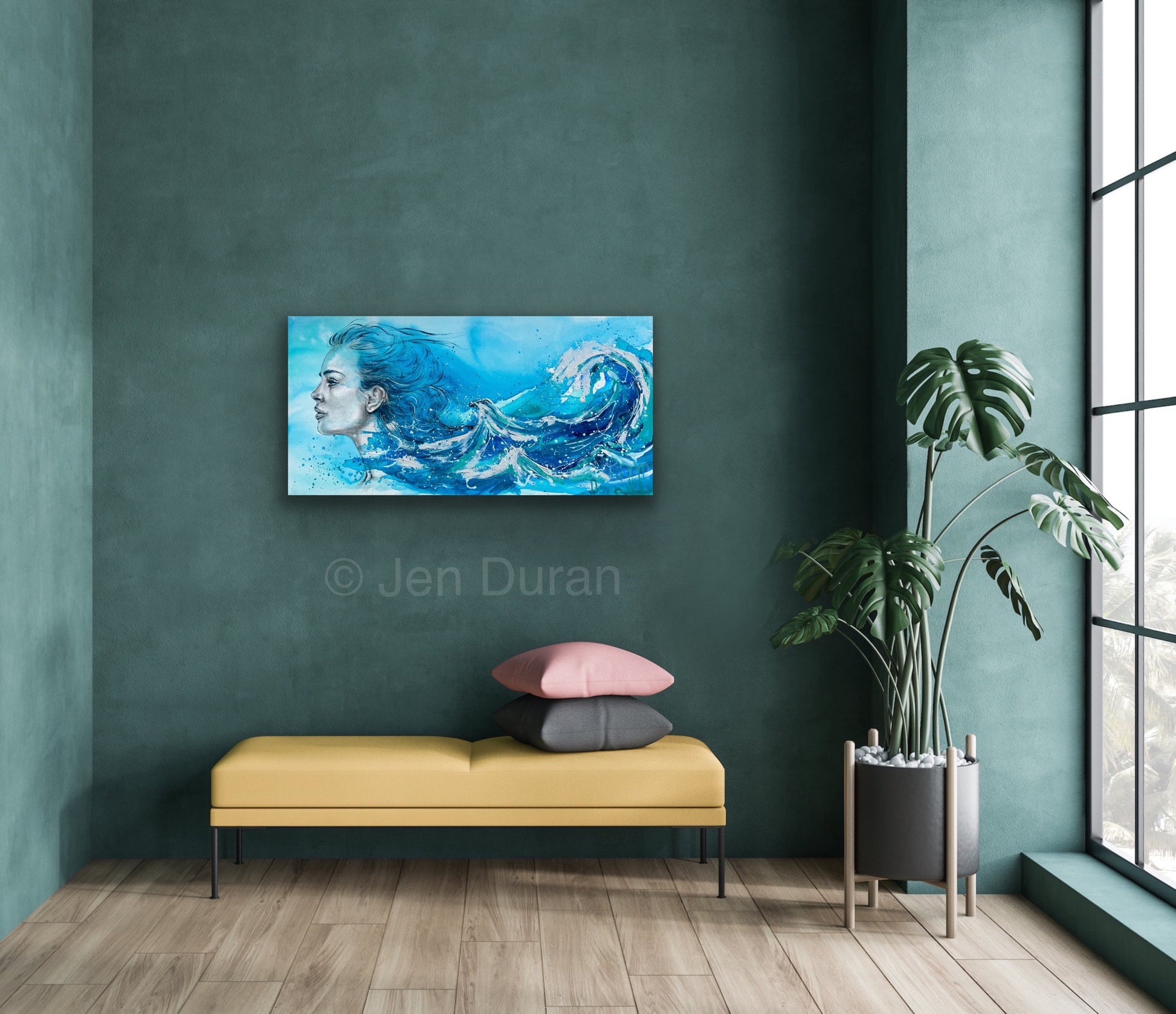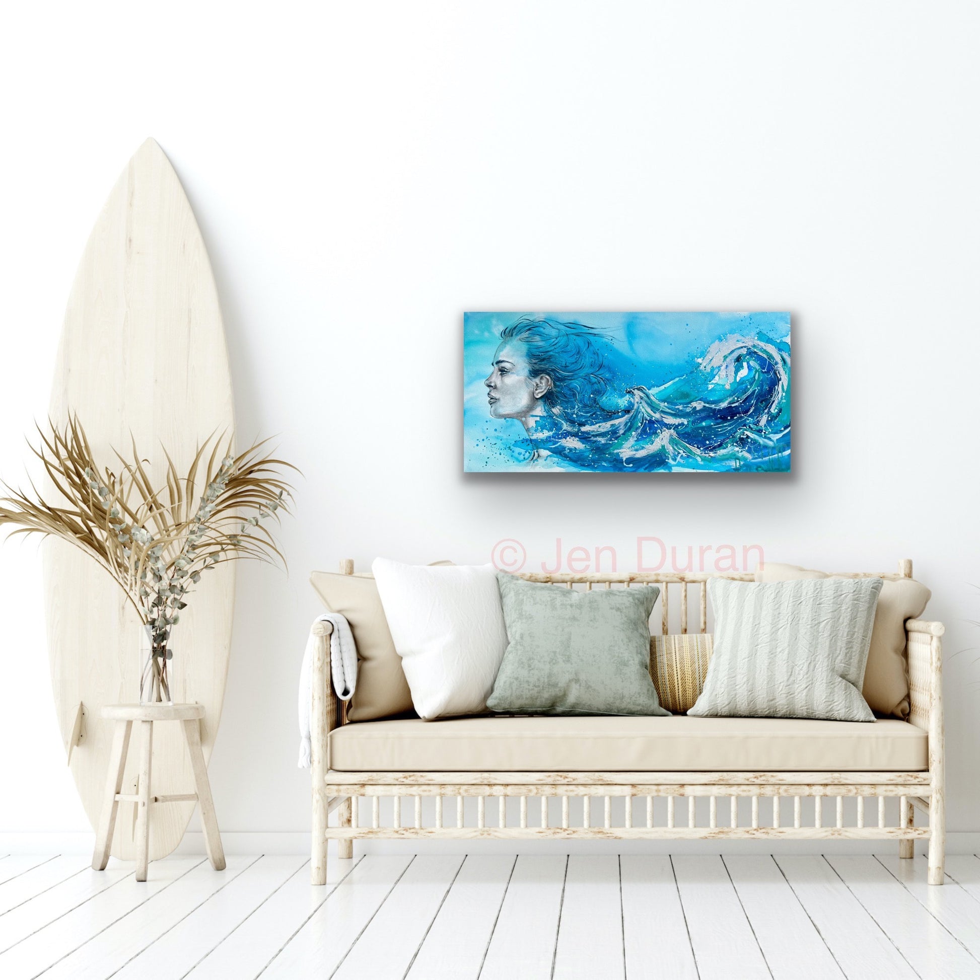 âThis piece flowed out of me like a tide I couldnât hold back. Siren Song is about feminine power that doesnât need to shoutâit moves. Itâs fierce, but fluid. Strong, but still. I painted her as a reminder that sometimes our greatest force is in the way we carry emotionârising and falling, and always returning.â â Jen Duran